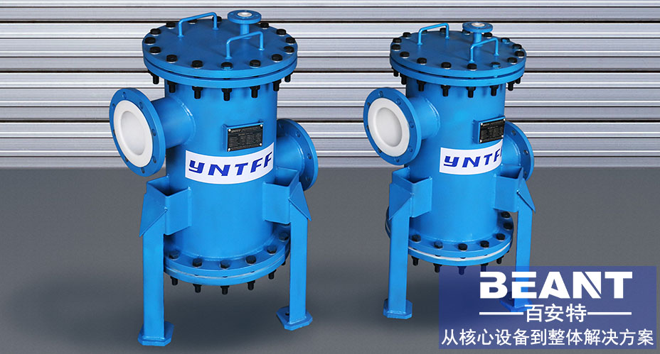 襯氟管道過濾器主要由接管、筒體、濾籃、法蘭、法蘭蓋及緊固件等組成。安裝在管道上能除去腐蝕性流體中的較大固體雜質,使機器設備(包括壓縮機、泵等)、儀表能正常工作和運轉,達到穩定工藝過程,保障安全生產的作用。 百安特可根據不同的介質及工況條件選用合適的襯里材料及工藝,為客戶提供全面的過濾解決方案。